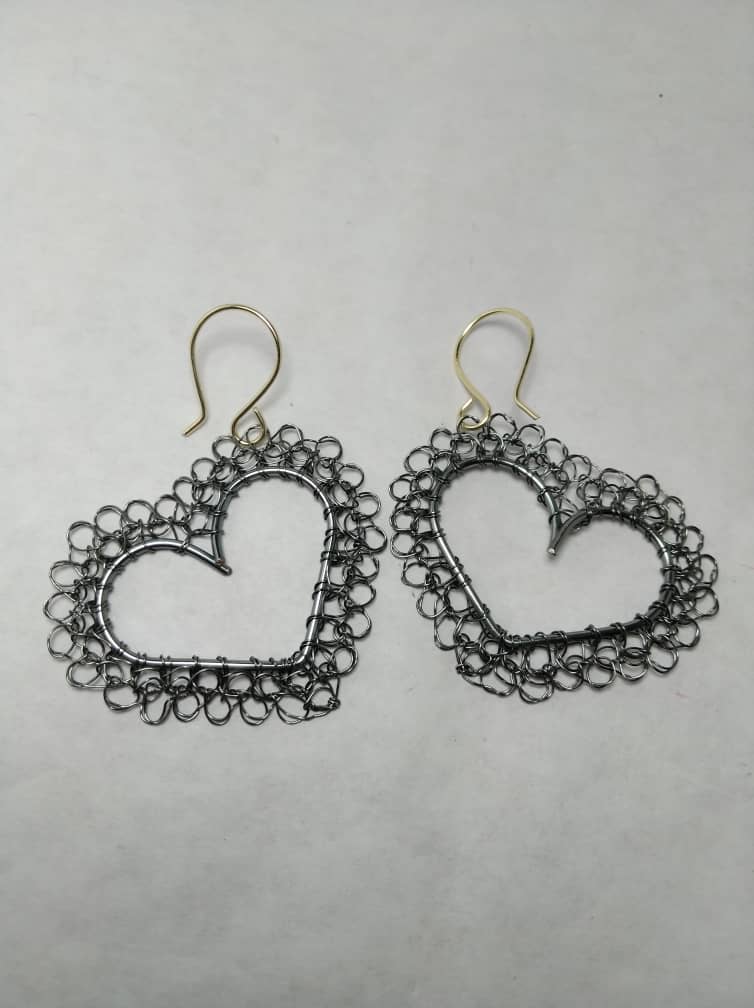 Zarcillos en Corazon mediano tejidos en punto peruano color ematita