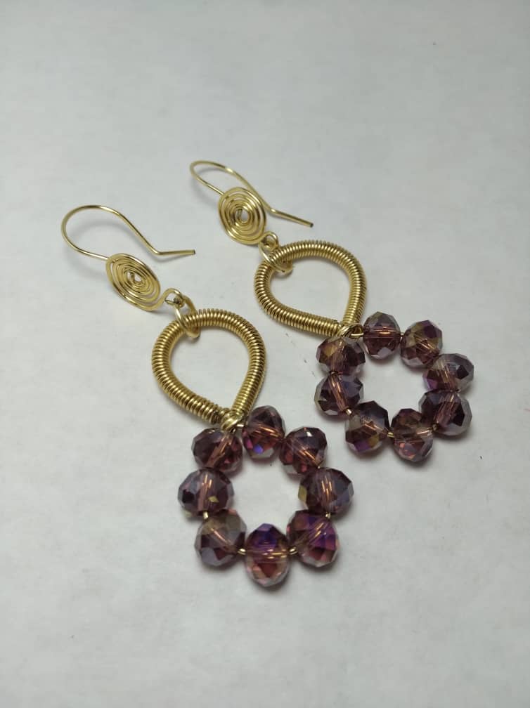 Zarcillos Infinito en cristal checo con acabado en alambres dorados